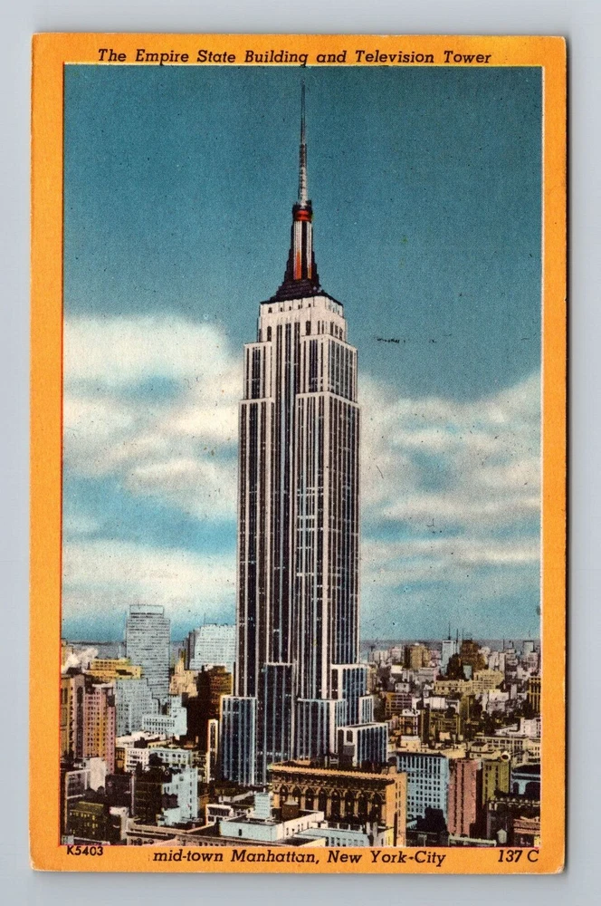 New York City NY Empire State Bldg. Television Tower 1954 Old Postcard