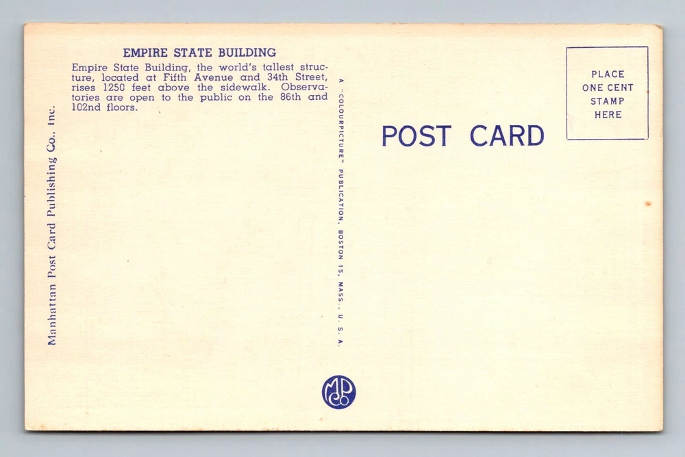 Subject: Cities & Towns Type: Printed (Lithograph) City: New York City Era: Linen Theme: Cities & Towns Postage Condition: See Image Country/Region of Manufacture: Unknown Country: USA Original/Licensed Reprint: Original Region: New York Unit of Sale: Single Unit