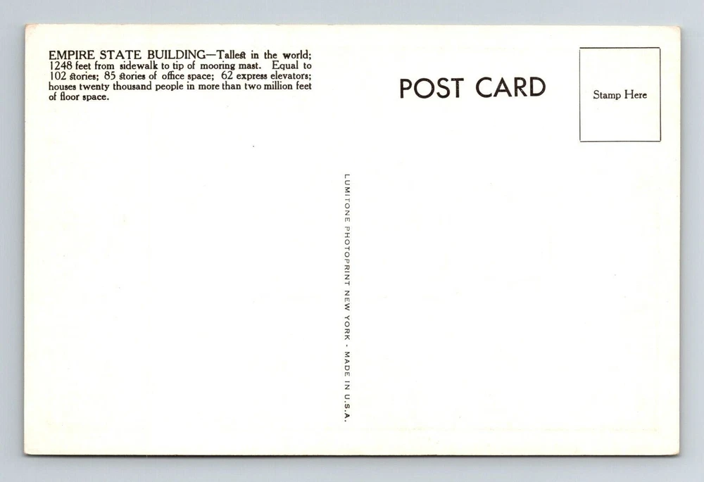 New York City NY, Empire State Building, Vintage Postcard