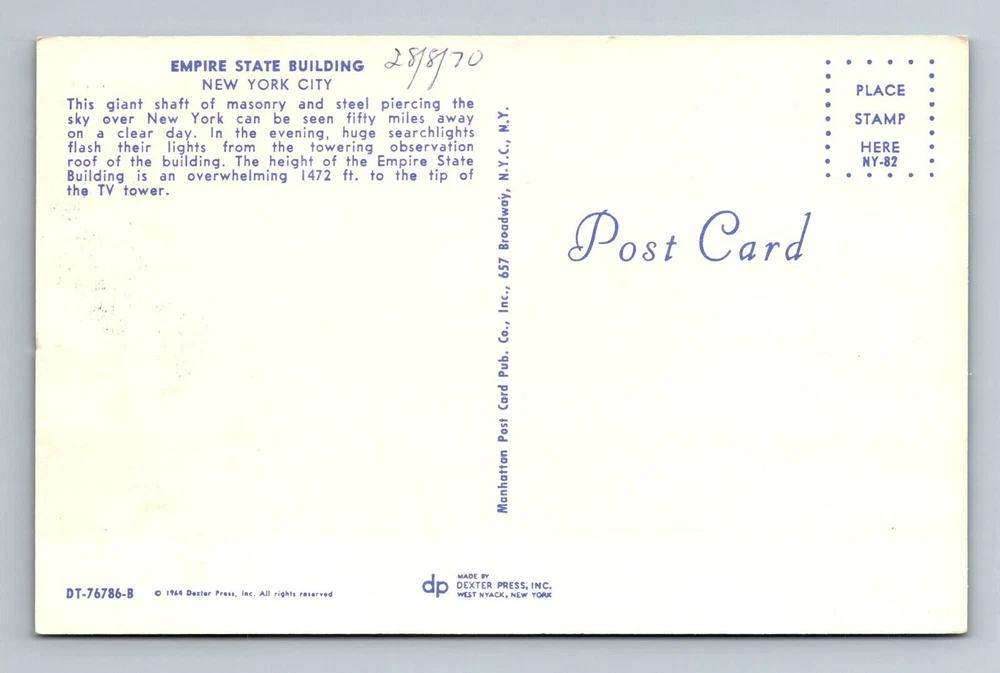 New York City NY, Empire State Building, Vintage Postcard
