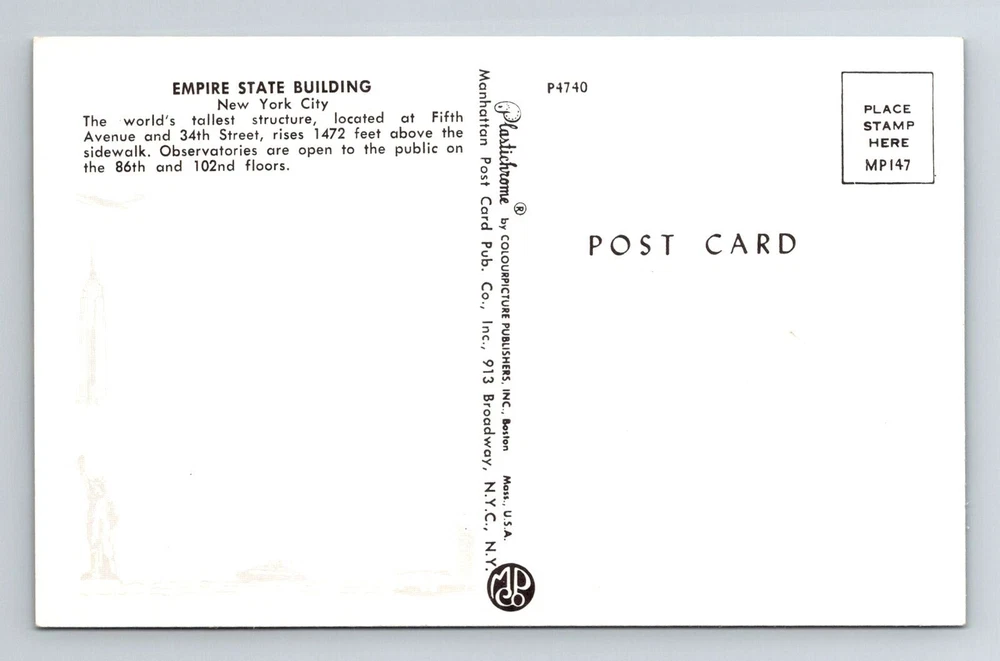 City: New York City Original/Licensed Reprint: Original Era: Vintage Unit of Sale: Single Unit Type: Printed (Lithograph) Subject: Cities & Towns Postage Condition: See Image Country: USA Theme: Cities & Towns Country/Region of Manufacture: Unknown Region: New York