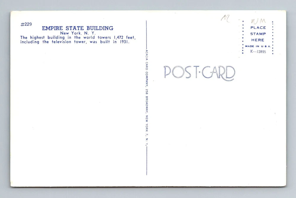 New York City NY, General Greeting, Empire State Building, Vintage Postcard