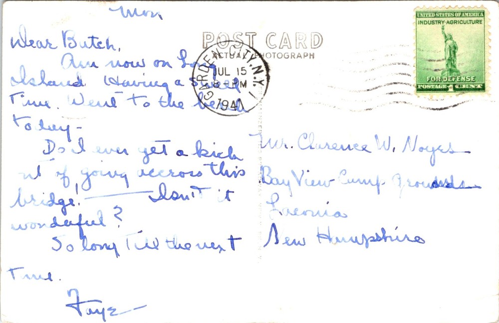 Country of Origin:United StatesSubject:BridgeTheme:Architecture, Cities & Towns, Community Life, Photographs, Transportation, Travel, Real Photo, BridgeUnit of Sale:Single UnitCountry:United StatesNumber of Items in Set:1Type:Real Photo (RPPC)City:New York CityModified Item:NoContinent:North AmericaFeatures:Real Photo PostcardPostage Condition:PostedOriginal/Licensed Reprint:OriginalMaterial:PaperVintage:YesRegion:New YorkEra:Real Photo (1900-Now)