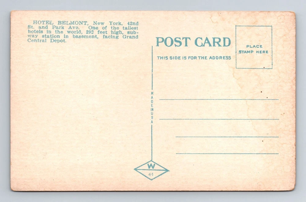 New York City NY, Hotel Belmont, Souvenir, Antique, Vintage Postcard