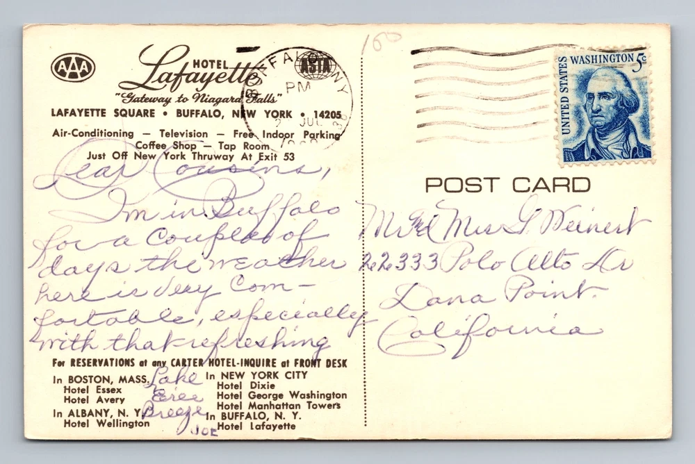 New York City NY, Hotel Lafayette, Souvenir, Vintage c1969 Postcard