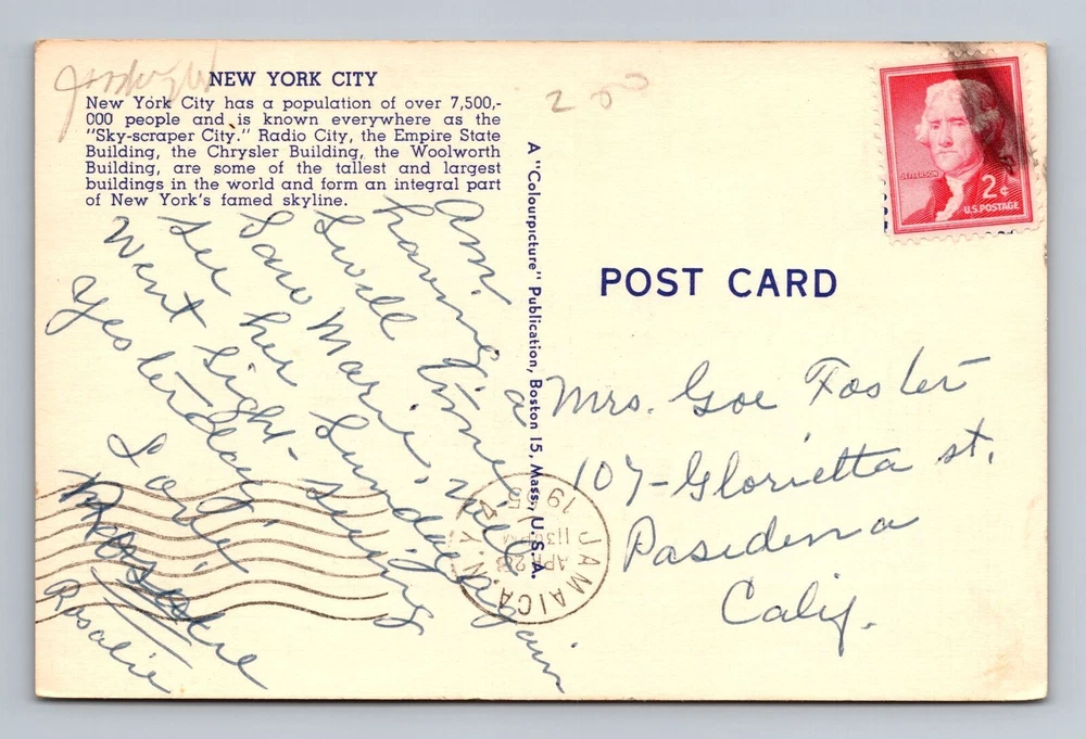 Type: Printed (Lithograph) Postage Condition: Posted Theme: Cities & Towns Size: Standard (5.5 x 3.5 in) Country/Region of Manufacture: Unknown Region: New York Material: Paper Original/Licensed Reprint: Original Country: USA Subject: Cities & Towns City: New York City Era: Vintage Unit of Sale: Single Unit