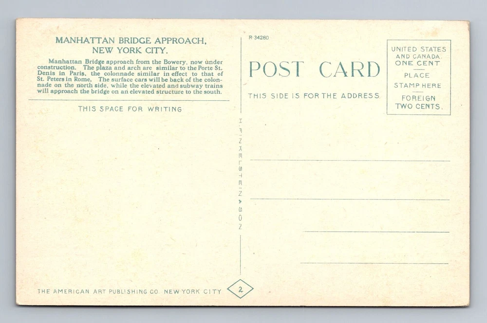 New York City NY, Manhattan Bridge Approach Souvenir Vintage Postcard