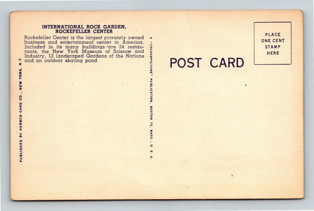 New York City NY,, Rockefeller Center Rock Garden Vintage Souvenir Postcard
