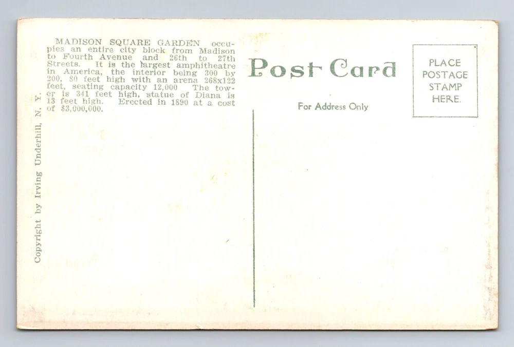 New York City NY, Scenic Madison Square Garden, Souvenir Vintage Postcard