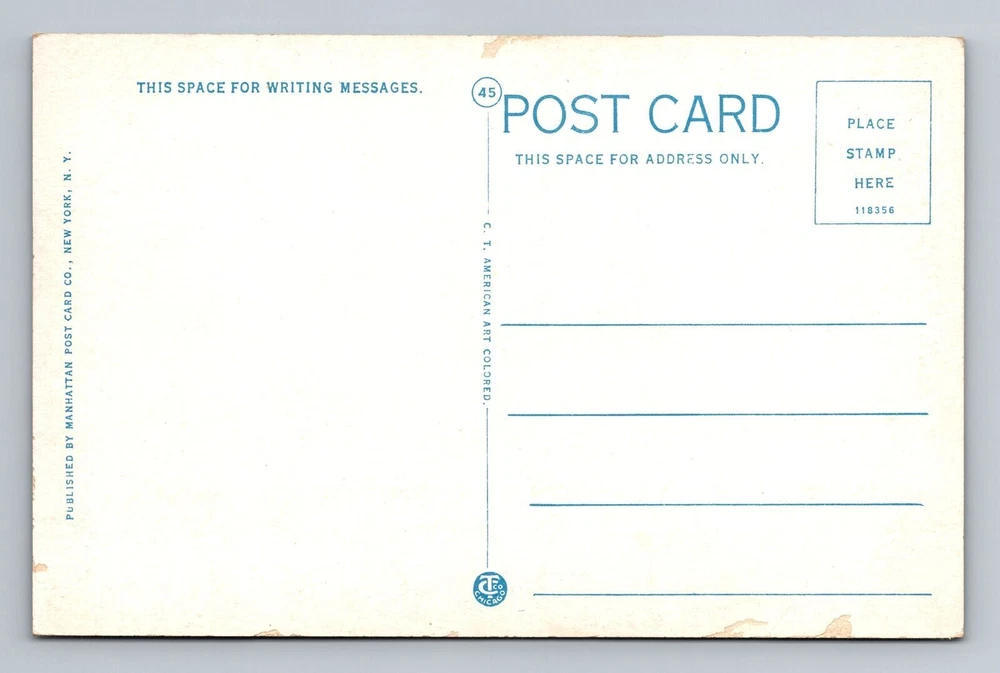 Greetings and Salutations! Welcome to The Vintage Postcard Company Postcard Size: Standard Vintage 3 1/2 by 5 1/2 (Unless Otherwise Noted in Title) USE THE EBAY PHOTO MAGNIFIER Examine photos carefully for condition and detail. Shipping & Handling USA: FREE USPS First Class Letter International : $1.49 USPS International First Class Please add $0.10 for each additional on same invoice . All Postcards are mailed in a protective plastic sleeve. Placed inside a sturdy white 16pt cardstock photo mailer. A DO NOT BEND sticker is applied. We aim to ship within 24 hours of payment, Monday through Friday. All Postcards are mailed USPS First Class Letter (no tracking.) Please allow 7-10 Days for your postcard to arrive. 3-4 weeks Internationally We do our best to answer any questions or correct any problems should they arise within 24 Hours. Your Support Means the World to Us. Thank You for Choosing Our Small Business!