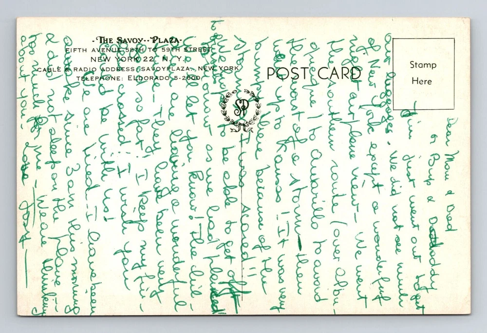 New York City NY, The Savoy Plaza, Souvenir, Antique, Vintage Postcard