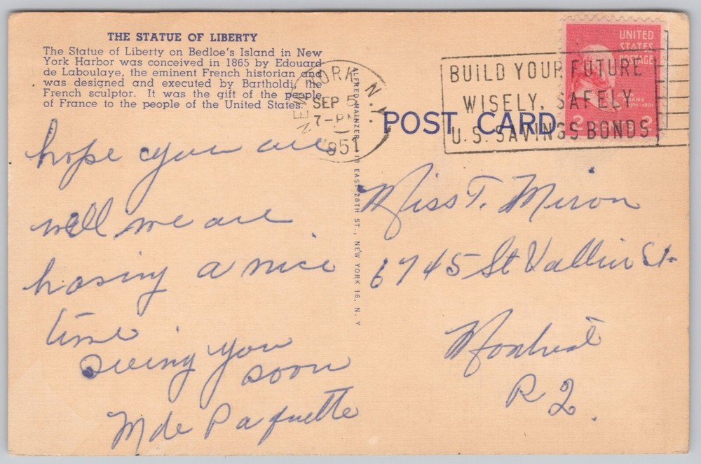 New York City Vintage Linen Postcard Featuring Statue of Liberty Landmark Design