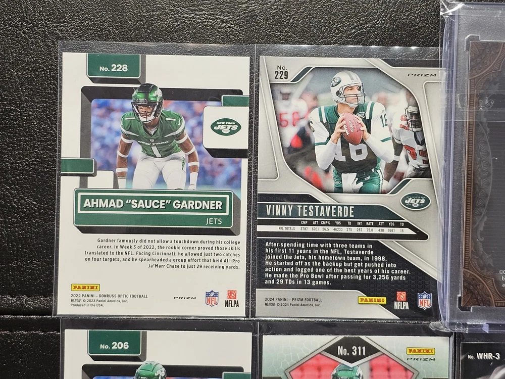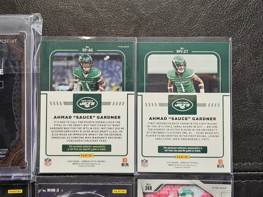 New York Jets Card Lot Garrett Wilson RC, Sauce Gardner RC & Patch Vinny SP