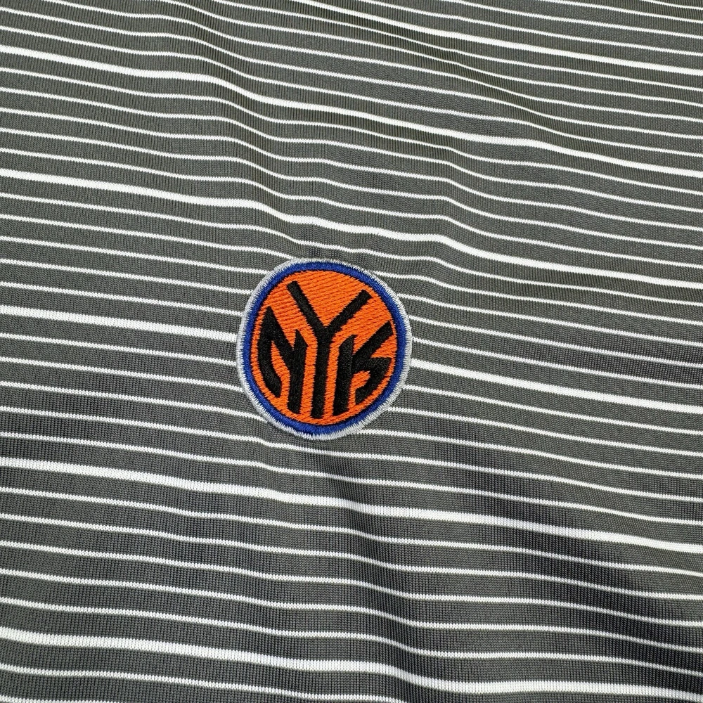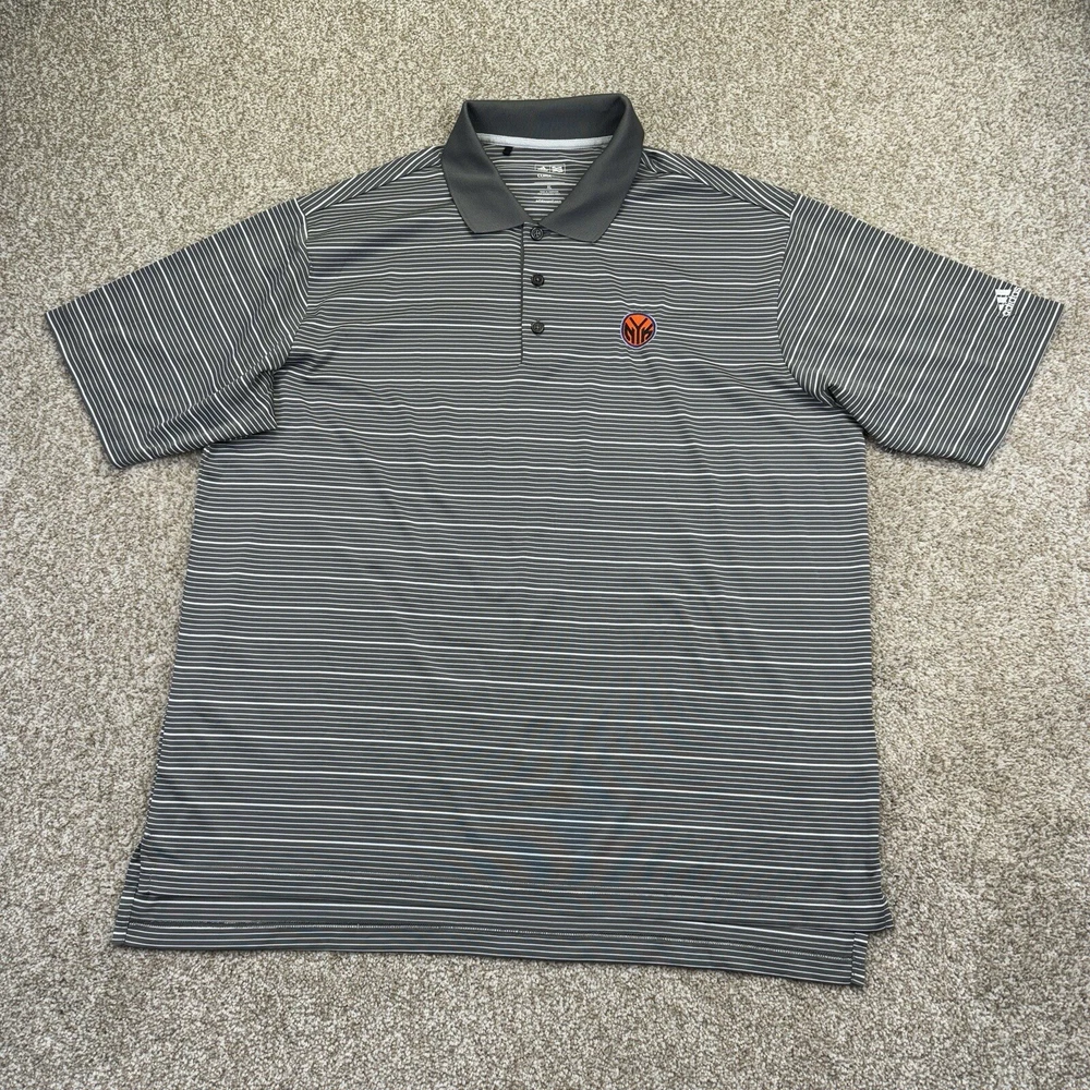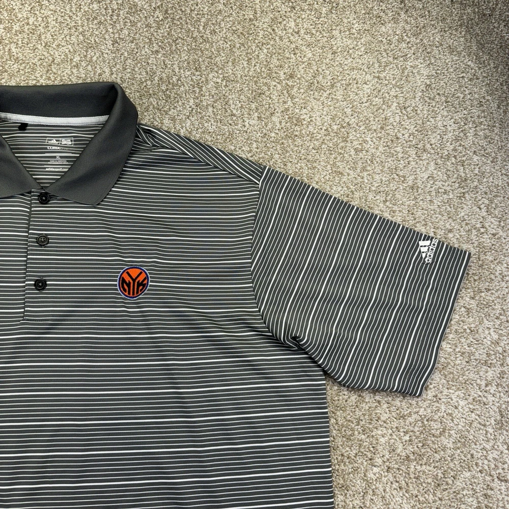 New York Knicks Polo Shirt Mens XL Adidas Climalite Gray White Stripes Short Sleeve NBA. Condition is Pre-owned. Shipped Standard. See Photos With Measurements. Item Has Been Clean Per Ebay Standard And Policy.