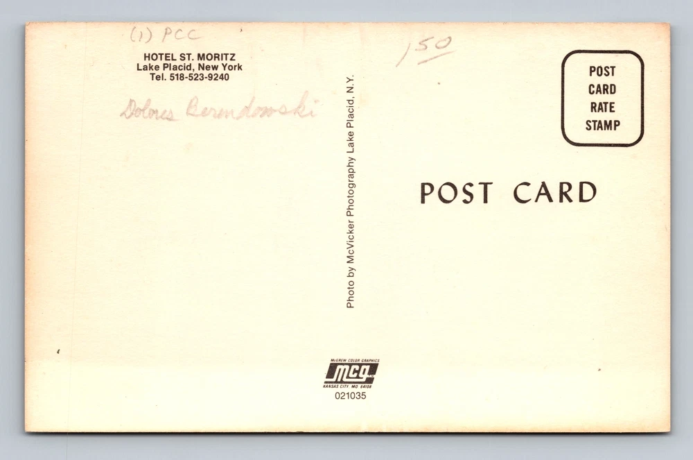 New York NY Lake Placid Hotel St Moritz Vintage Postcard Standard Souvenir PC