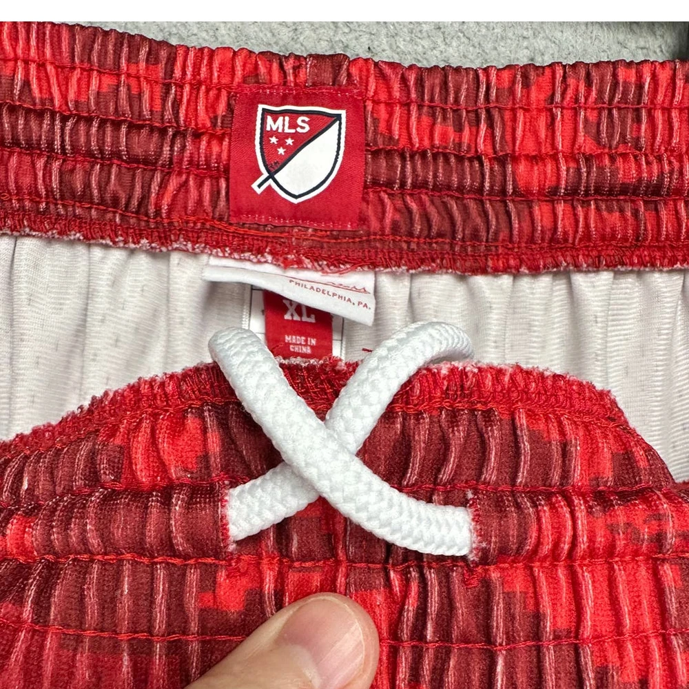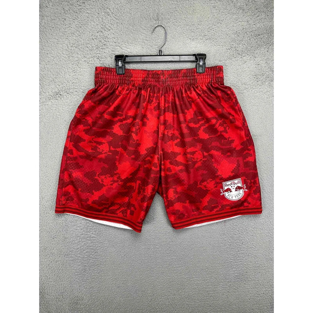 New York Red Bulls MLS Shorts Men XL Red Camo Athletic Logo Soccer Mitchell Ness