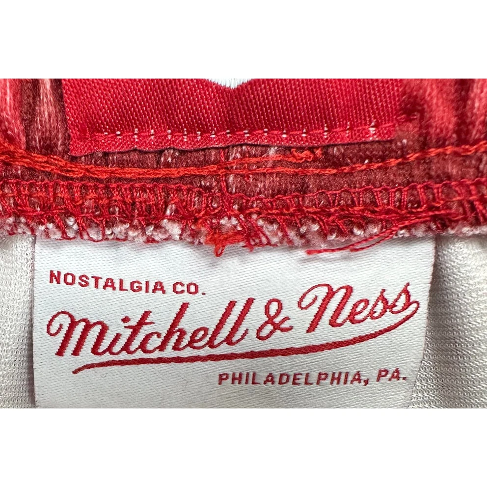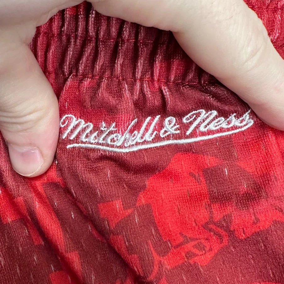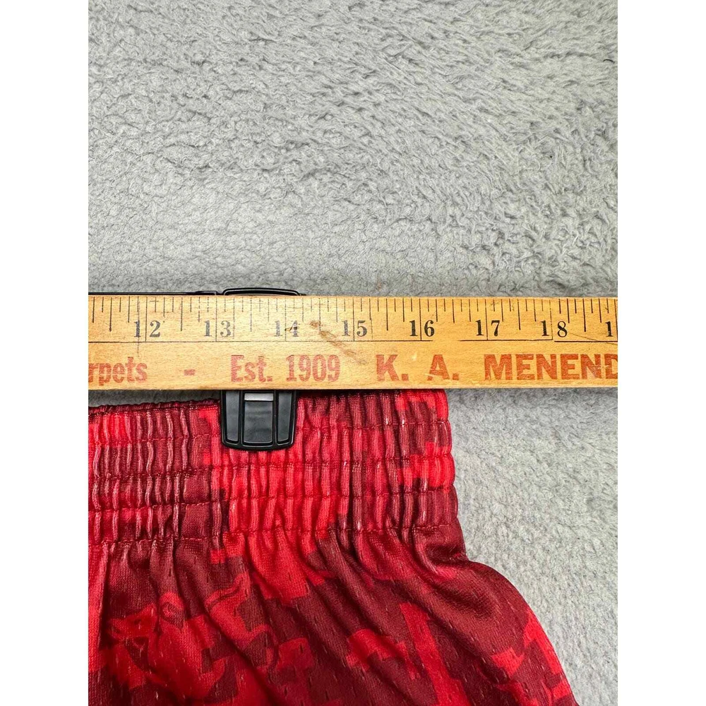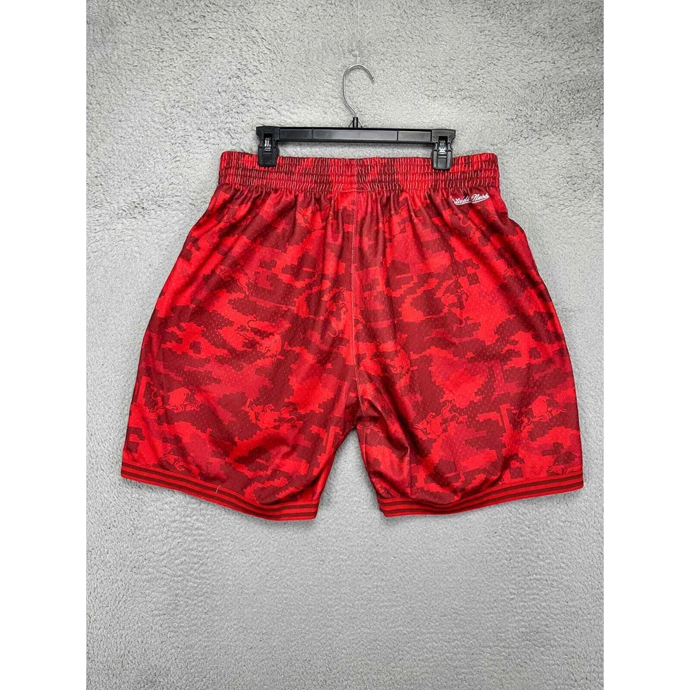 Country/Region of Manufacture: China Waist Size: 32 in Material: Polyester Blend Product Line: Mitchell & Ness Athletic Shorts Handmade: No Model: Mitchell & Ness Athletic Shorts Style: Athletic Adult Elastic Waist Drawstring Sports Closure: Drawstring Features: Stretch Personalize: No Inseam: 8.5 in Fit: Athletic Size: XL Color: Red Fabric Type: Microfiber Vintage: No Department: Men Compression Area: Waist Brand: Mitchell & Ness Garment Care: Machine Washable Performance/Activity: Walking Seller Notes: “Excellent condition with no signs of wear.” Character: NA Occasion: Activewear Pattern: Camouflage Size Type: Regular Theme: Outdoor Season: Summer