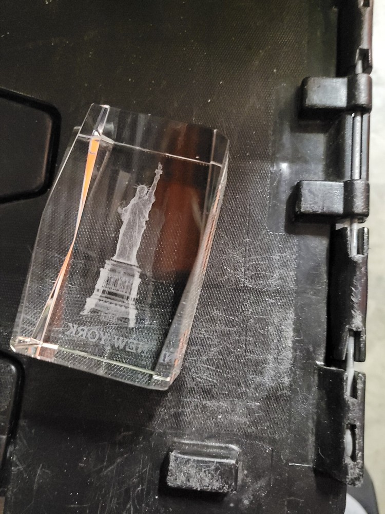 This handmade paperweight features a 3D laser-etched design of the Statue of Liberty in New York, encapsulated in clear glass crystal. The intricate detailing of the iconic statue is displayed beautifully, making it a unique and decorative collectible piece. Perfect for adding a touch of artistry and patriotism to any space, this New York Statue of Liberty paperweight would make a great addition to any collection or a thoughtful gift for a lover of American landmarks.