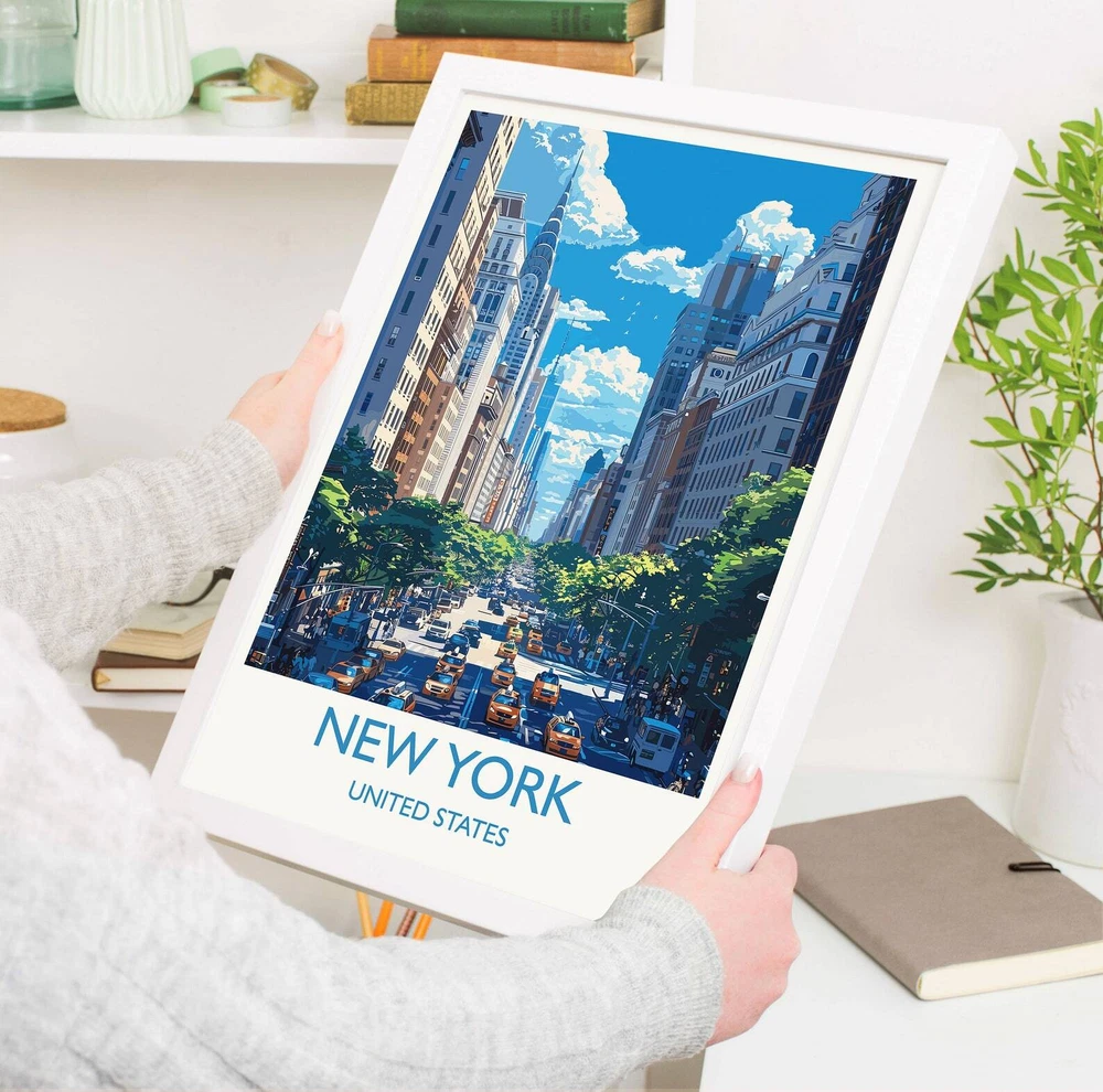 New York Travel Print Wall Art Travel Poster Of New York New York Art Lovers Gift Usa Art Gift Material: Premium luster photo paper Print type: Inkjet printing One side printed + The finish provides the highest possible resolution and color saturation + Lasts up to 200 years in color and 400 years in black-and-white + Printed on high-quality resin-coated photo base paper medium + Posters can be hung with double-sided tape, tacks, or framed + Hand washing with a gentle cry cloth is recommended for extended durability I will hand select the best choice of paper for your chosen design to ensure top quality results for a beautiful, bright and luxurious print. All prints are sealed in cellophane slips for protection during transportation, and are shipped in a protective cardboard envelope.