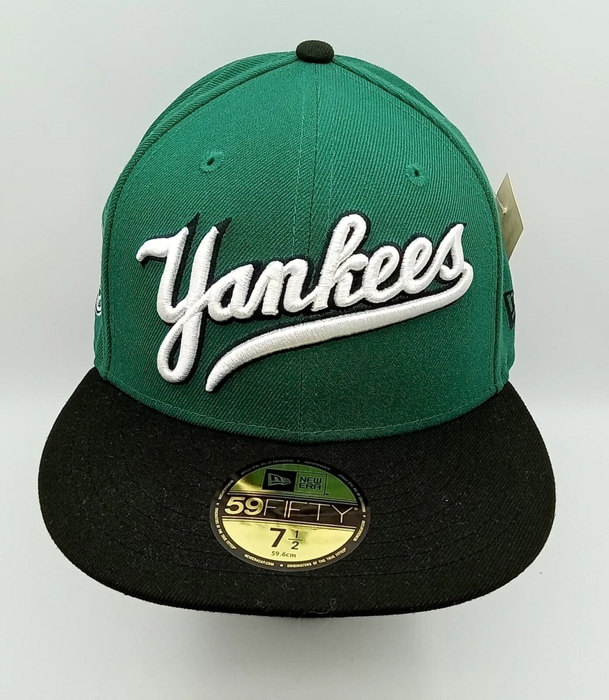 NWT. Show off your love for the New York Yankees with this stylish and comfortable New Era 59Fifty Cap. This unisex adult hat is the perfect accessory for any baseball fan, featuring the iconic team logo and a green color scheme. The cap is made in China and is available in size 7 1/2, making it a great fit for any head size. Celebrate the 2009 inaugural season of the New York Yankees with this embroidered cap. Perfect for game day or everyday wear, this hat is a must-have for any true fan. Don't miss out on the opportunity to add this unique and stylish cap to your collection. F13 BOX - 1269