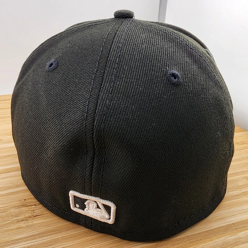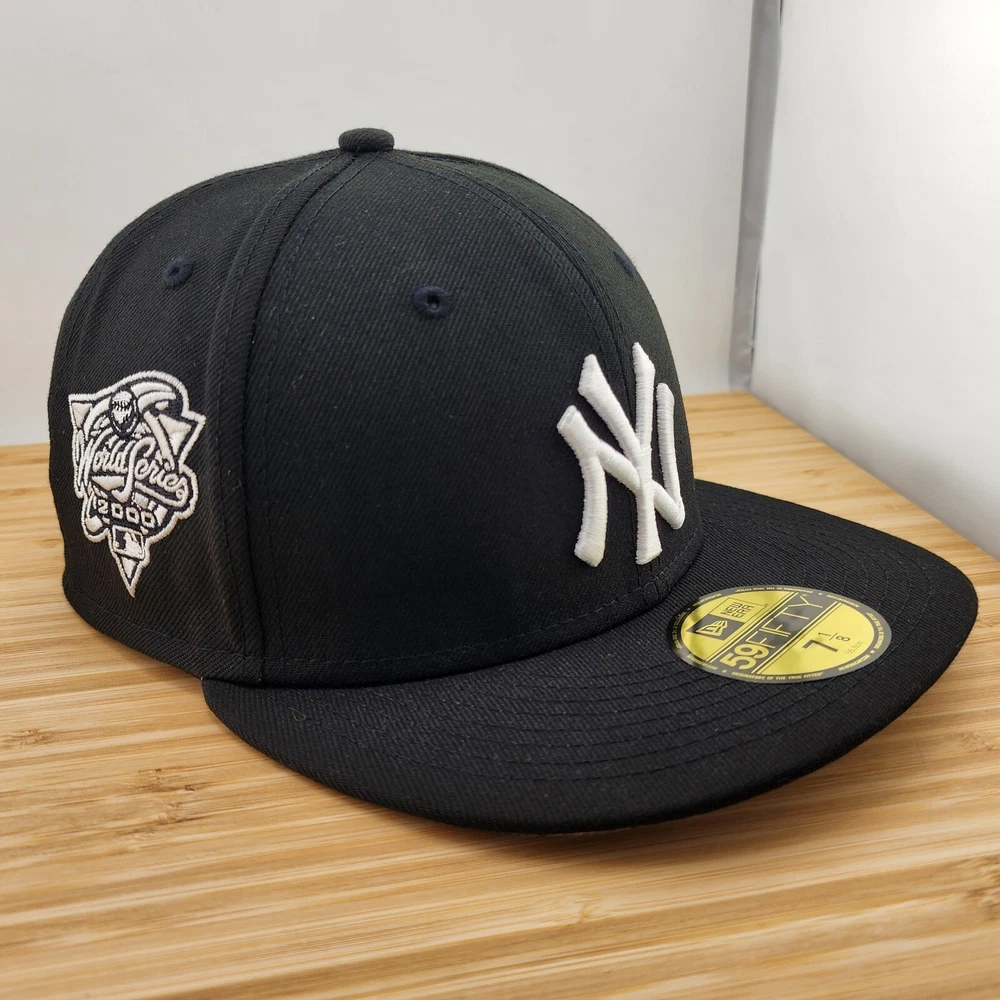 Show off your love for the New York Yankees with this black fitted hat from New Era. Featuring the iconic team logo and a solid pattern, this baseball cap is perfect for any sports fan. Made with high-quality polyester material, this hat is comfortable to wear and durable for everyday use. Whether you're headed to a game or just running errands, this MLB Yankees hat is the perfect accessory to add to your collection. Available in size 7 1/8, this hat is designed for men and is a great addition to any wardrobe. Get yours today and show your support for the New York Yankees!