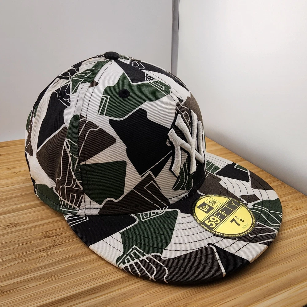 Show off your love for the New York Yankees with this stylish fitted hat. The geometric camo design adds a unique touch to this cap, made from 100% cotton and crafted by New Era. Perfect for game day or everyday wear, this hat is available in size 7 7/8 and features the iconic Yankees logo. Made in China, this cap is a must-have for any fan of the team.
