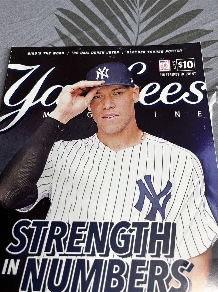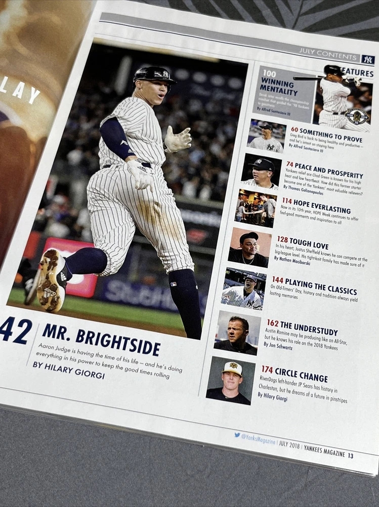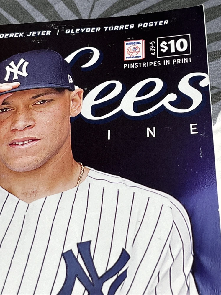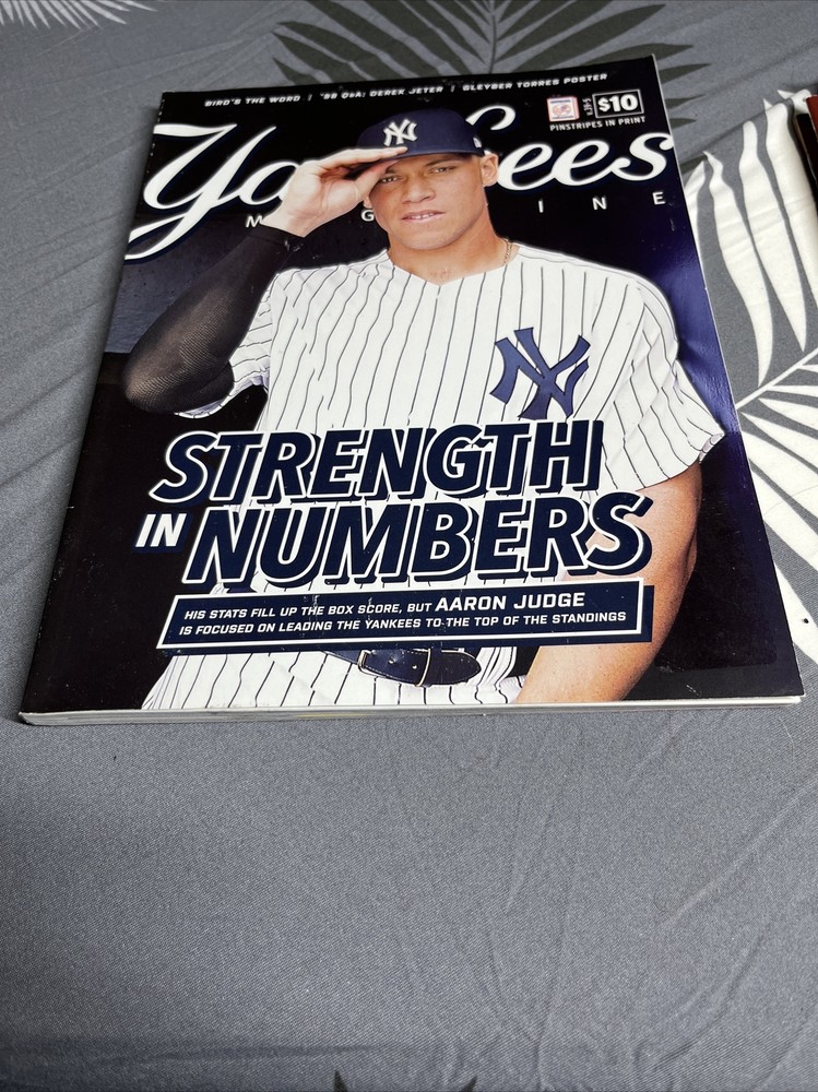 New but minor printing flaws on cover. See pics. This New York Yankees Magazine from July 2018 features Aaron Judge on the cover and includes articles about the team's history, baseball games, and celebrity culture. The publication is in English and comes monthly. It is a great addition to any fan's collection, especially those interested in the Yankees' baseball history and current games. The magazine is from the United States and has no label.