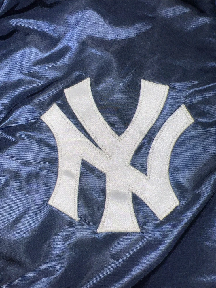 Show off your love for the New York Yankees with this vintage 90s navy blue nylon windbreaker jacket. Featuring the iconic team logo sewn onto the chest, this jacket is perfect for any MLB fan. Made from high-quality materials, this jacket is both durable and comfortable to wear. Check photos for measurements