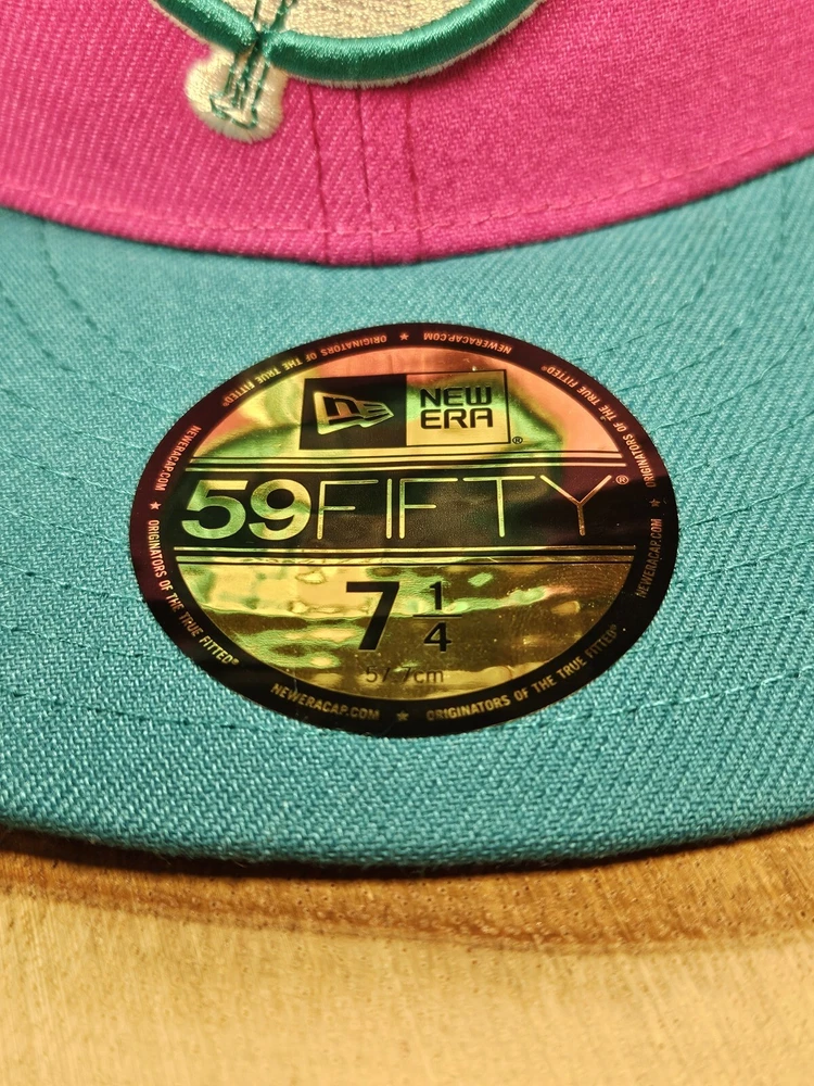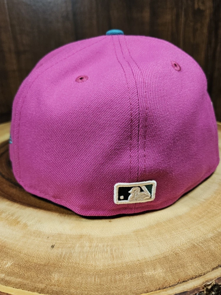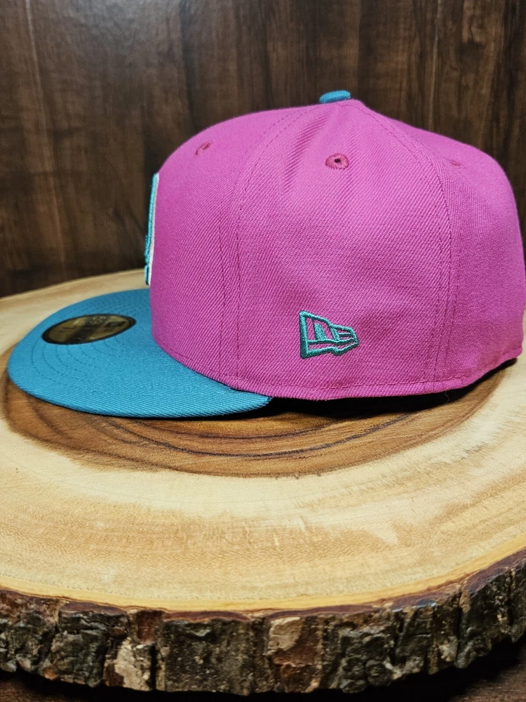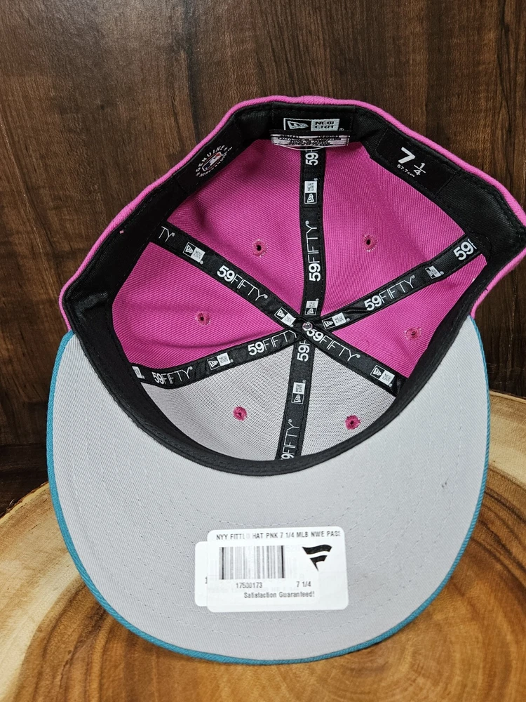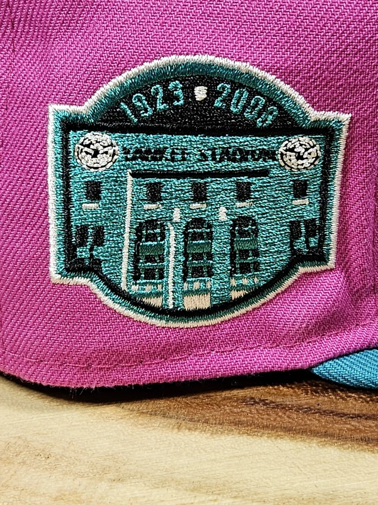 New York Yankees New Era 59Fifty Fitted Hat in a striking pink/aqua colorway commemorates the 80th year of Yankee Stadium. This solid pattern baseball cap is designed for men with a size of 7 1/4 and boasts a fitted style for a comfortable fit. The cap features a patch of the iconic Yankee Stadium, making it a must-have for any MLB baseball fan and a perfect accessory for streetwear enthusiasts. This New Era cap is a great addition to any sports-themed wardrobe and is sure to turn heads. See pictures for better color...lighting a little off
