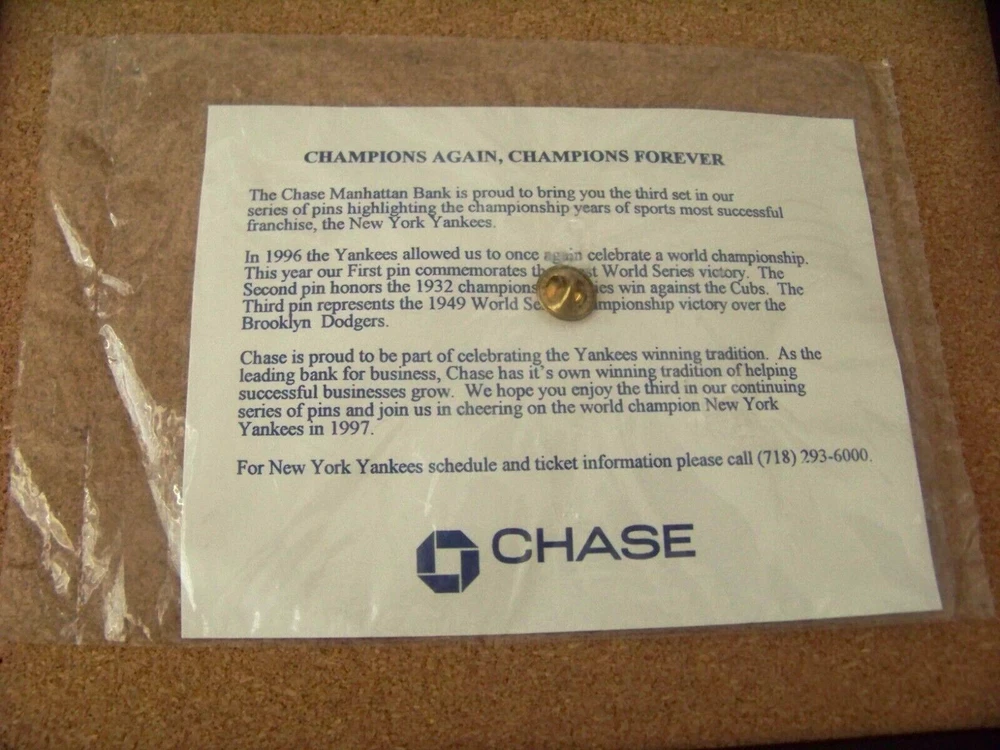 gtin13: Does not apply UPC: Does not apply Product: Pin, Button Modified Item: No Team: New York Yankees Brand: Chase Gender: Unisex Adult Sport: Baseball-MLB Pre & Post Season: World Series Officially Licensed: Yes Featured Refinements: Stadium Giveaway Color: Multi-Color