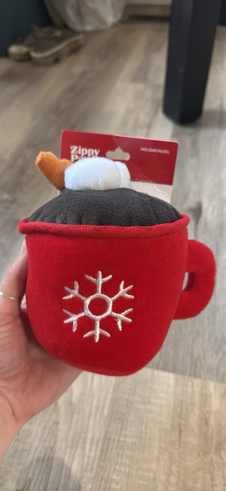 New - ZippyPaws Christmas Hot Cocoa Mug Plush Dog Toy, Squeaks