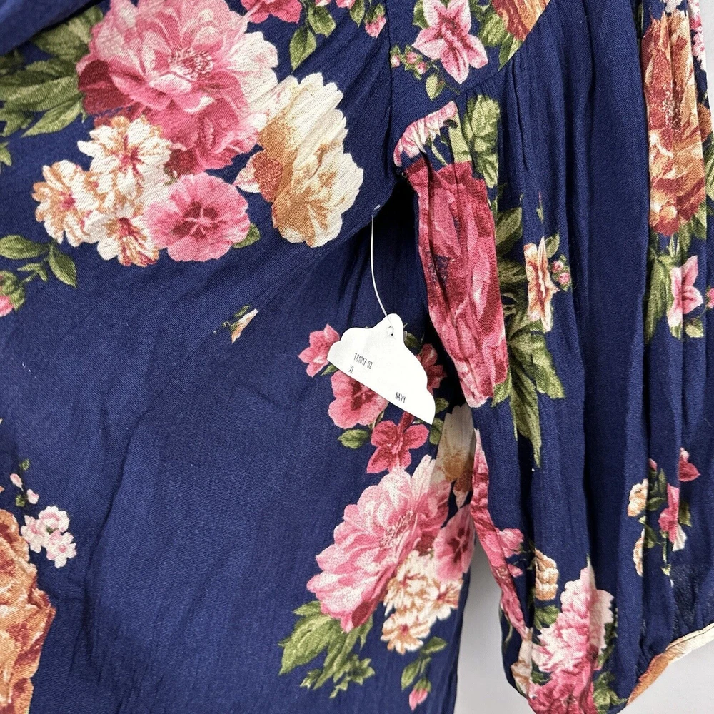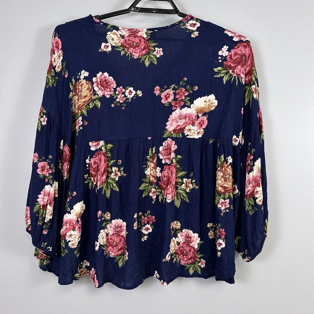 Listed is a altar'd state peasant style swing top, V-neck, babydoll style. Dark blue with floral print. 3/4 sleeve. Crochet style lace surrounding v-neck. Size: XL Fabric: 100% rayon Condition: New with tag Measurements: Lying flat, from underarm to underarm across chest: 28" across bust Lying flat, from shoulder to bottom of shirt: 24" (26" shoulder to bottom in back, slight hi-low style) Shipping cost is calculated to USPS costs based on weight of items. Thank you for looking, please message with any questions!