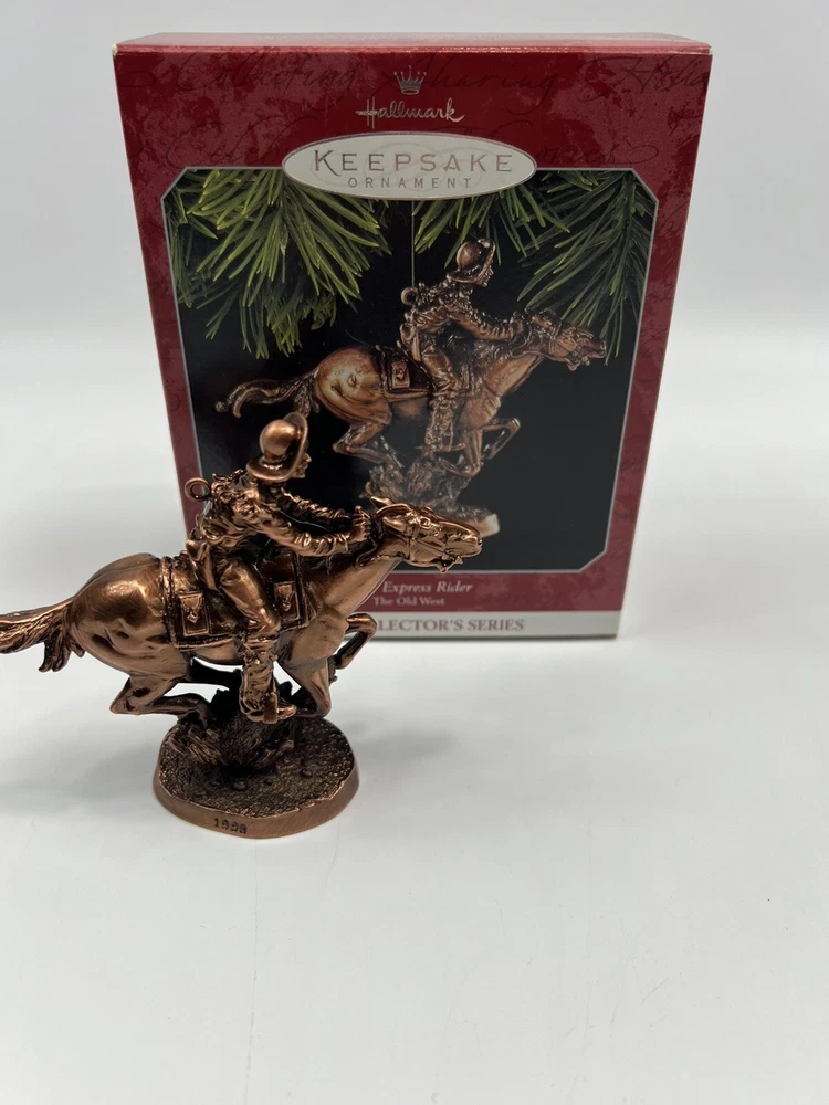 Type:OrnamentProduction Technique:UnknownFranchise:HallmarkAge Level:Over 18 YearsOccasion:ChristmasSubject:Pony ExpressMPN:QX6323Number of Items:1Material:UnknownTime Period Manufactured:1990-1999Vintage:YesFeatures:HangingAntique:NoCharacter:N/ABrand:HallmarkShape:Cowboy On HorsebackYear Manufactured:1998Collection:OrnamentsCountry/Region of Manufacture:ChinaSet Includes:OrnamentTheme:Christmas