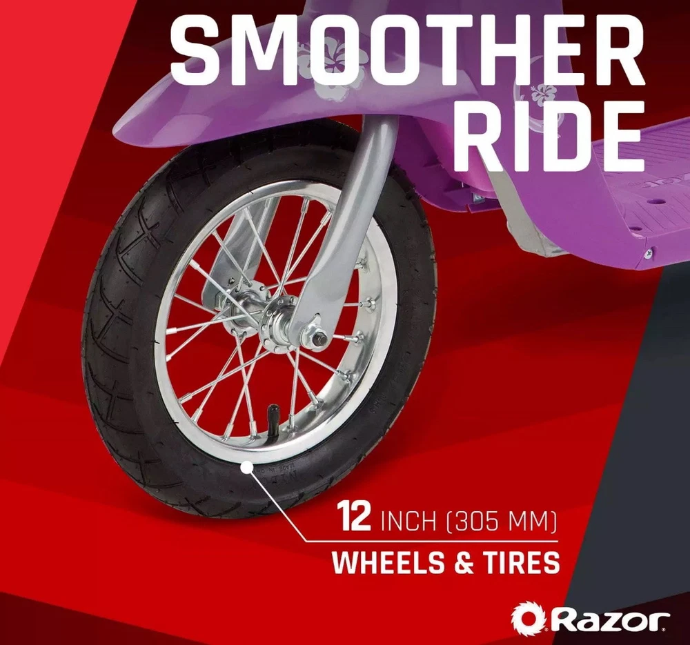 This stylish retro scooter is a blast! Smooth 24V power gives great speed for teens, and the design is super cool—looks just like a vintage Vespa. Super easy to assemble, comes ready to ride straight out of the box. Perfect for cruising around the neighborhood with friends for hours of fun! Highly recommend for any teen who loves a blend of retro vibes and modern electric power.