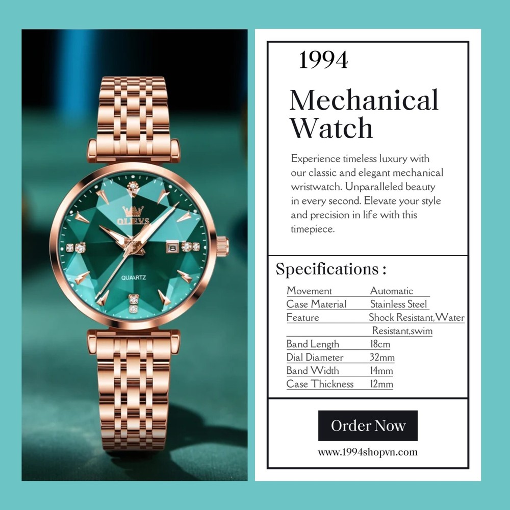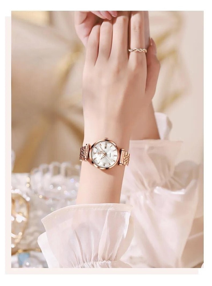 Discover the perfect blend of luxury and functionality with this waterproof rose gold women's watch. Made from durable stainless steel, it's shock-resistant and has a 3Bar water resistance depth, perfect for swimming. The round case and leather strap add a touch of style, making it ideal for any active and fashionable woman. Upgrade your style with the 1994 store.01