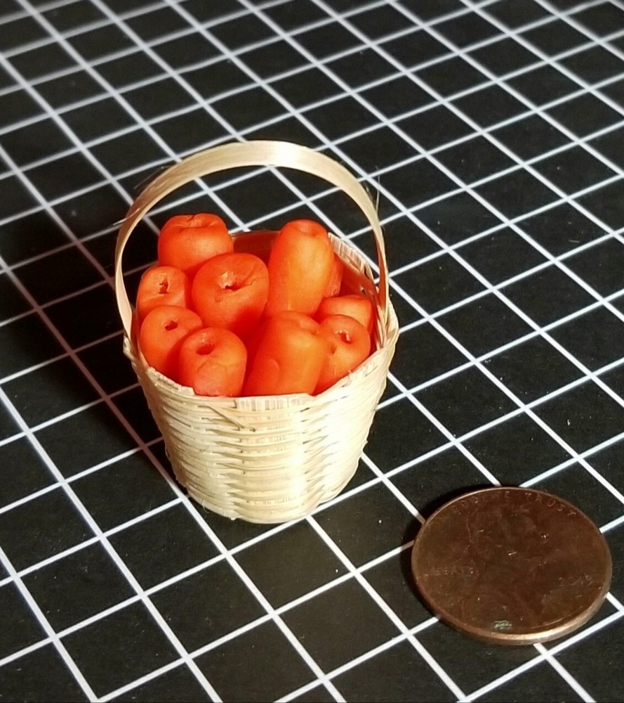 You are bidding on a cute, sweet 1:6 size miniature wicker Basket filled with 12 yummy, assorted size loose Carrots, exactly as shown! (Please note: the bunny doll, table & other items are not included & are used for your scale example only ;) This item is new, & handmade by me from clay & painted; excellent quality & made to be sturdy and durable for any doll house, bakery, kitchen or similar room box or diorama type display purposes! :) We will always happily combine shipping on multiple wins or purchases on items ending within the same week to help save you $$. Otherwise, we generally ship same or next day. Thanks so much for stopping by to check out all our auctions! Happy Bidding! :)