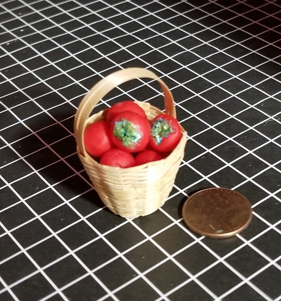 You are bidding on a cute, sweet 1:6 size miniature wicker Basket filled with 12 yummy, assorted size loose Tomatoes, exactly as shown! (Please note: the bunny doll, table & other items are not included & are used for your scale example only ;) This item is new, & handmade by me from clay & painted; excellent quality & made to be sturdy and durable for any doll house, bakery, kitchen or similar room box or diorama type display purposes! :) We will always happily combine shipping on multiple wins or purchases on items ending within the same week to help save you $$. Otherwise, we generally ship same or next day. Thanks so much for stopping by to check out all our auctions! Happy Bidding! :)