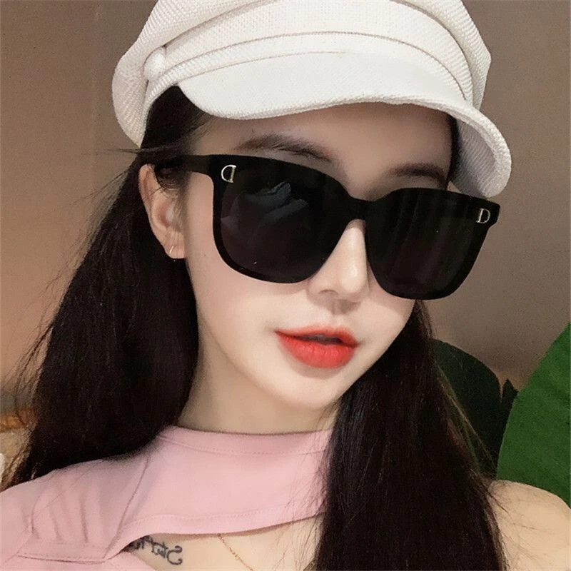 The product is a pair of trendy square large frame sunglasses designed for women. These fashionable retro-style sunglasses are perfect for street photography or everyday wear. The black frame adds a chic touch to the overall design, making them versatile for various outfits and occasions. Ideal for adding a touch of vintage flair to any look, these sunglasses are a stylish accessory for any woman's wardrobe.