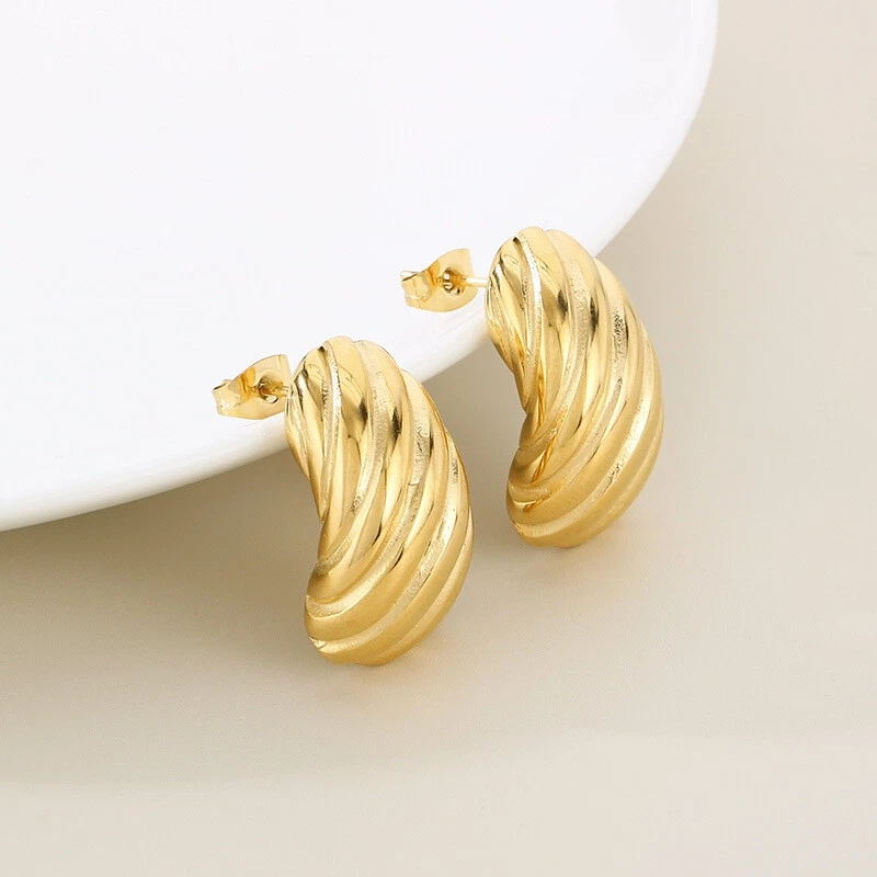 New titanium steel C-shaped earrings plated with 18k gold earrings for women