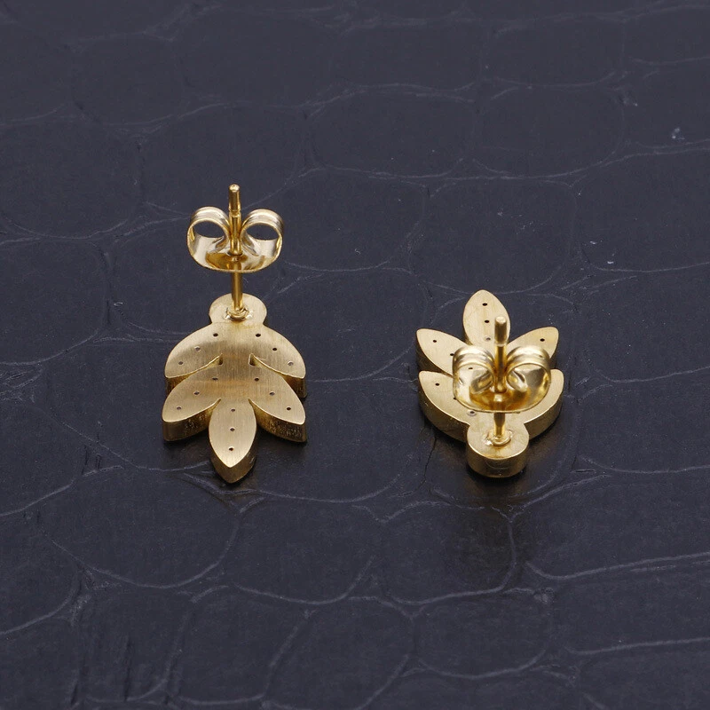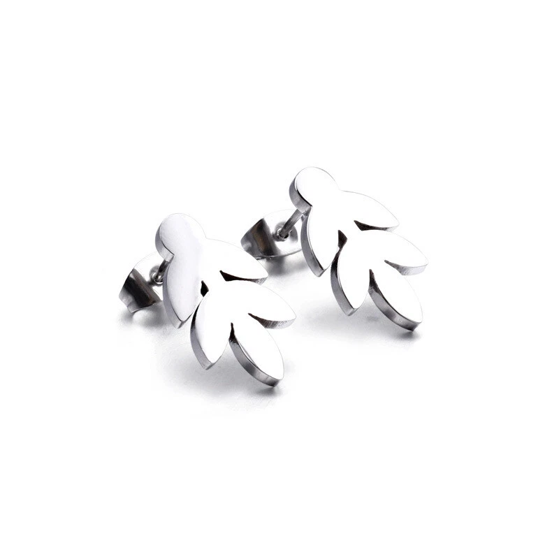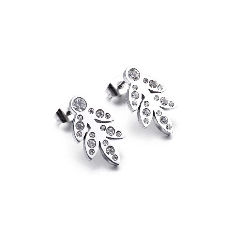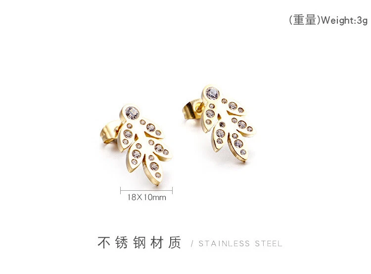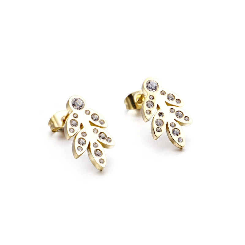 New titanium steel diamond leaf stud earrings fashion trend earrings for ladies
