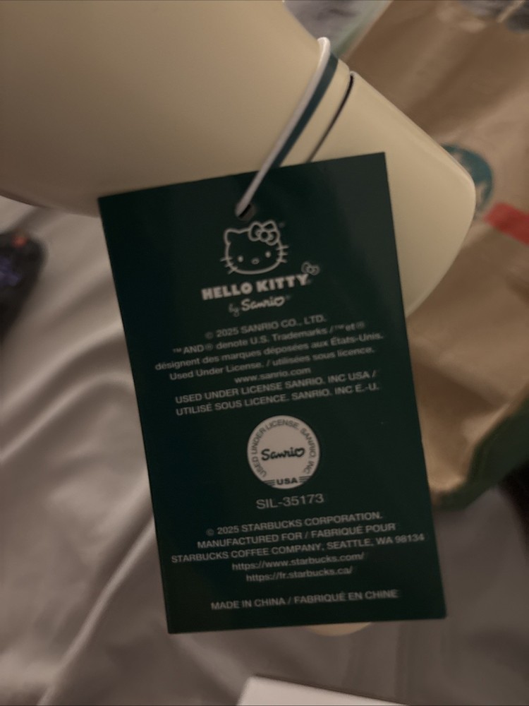 The product is a Starbucks x Hello Kitty 20oz Stainless Steel Water Bottle Tumbler, showcasing a collaboration between Starbucks and Hello Kitty. This water bottle tumbler is super cute. HANDWASH ONLY