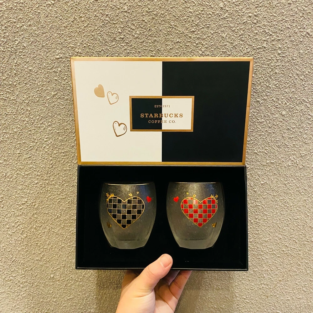 New2022 China Starbucks Valentine's Day Meet Match 12oz Glass Cups With Gift Box Material:Glass Capacity:12oz(350ml) Released time:2022.1.25 Package:two glass cup with gift box