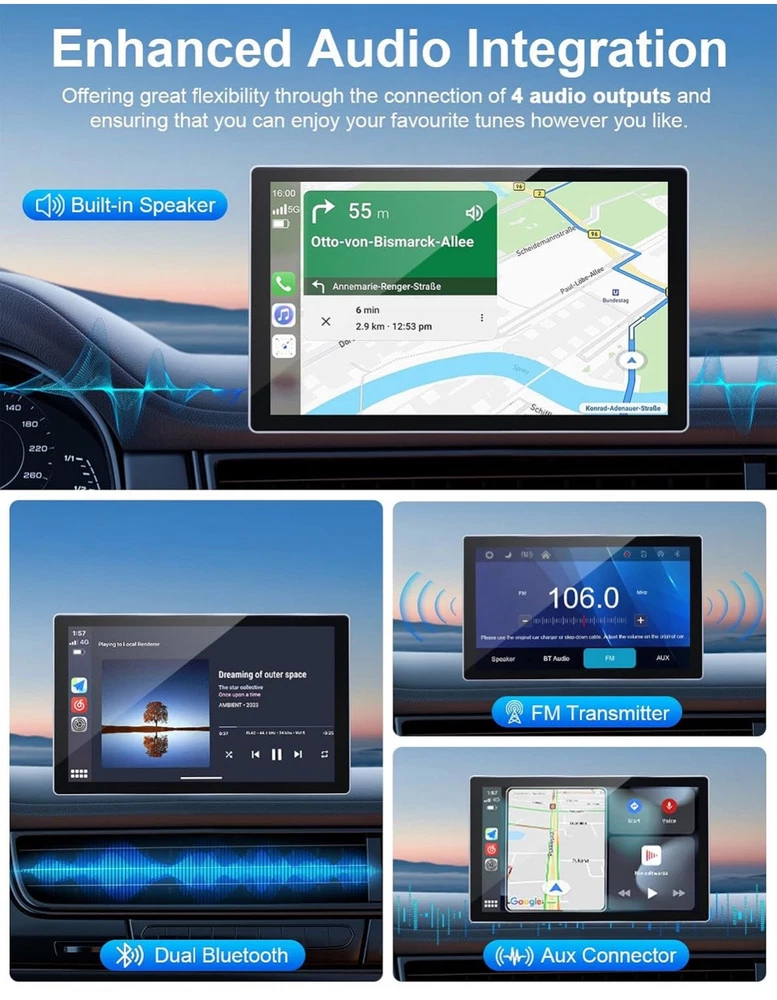Brand New wireless Portable Carplay Screen for Car, 9" Wireless Carplay Android Auto Screen with 4K Dash Cam & 1080P Backup Camera, Car Play Stereo with Voice Control & GPS Navigation, Mirror Link, BT/FM/AUX Box still sealed.