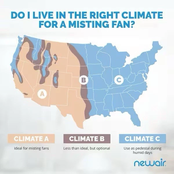 Item Height: 18 in Brand: Newair Suitable For: Outdoor Type: Misting Features: Oscillation