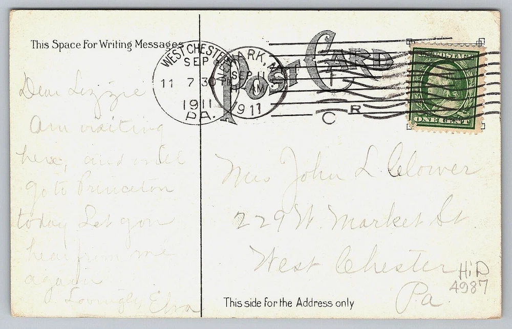 WELCOME TO People And Places Of The Past Here you will find unique antique photographs, real photo postcards, and other vintage postcards that can be used for collecting, genealogy, or crafting. Many of these historic photographs are rare, hard to find, and are one-of-a-kind images that cannot be found anywhere else. Please visit our ebay store and Thank You for shopping with us! This vintage, antique post card is in good condition. Please see high resolution pictures of the front and back of this card closely for detailed cosmetic condition prior to purchase. This post card measures 3.50 inches x 5.50 inches. This post card will be shipped to you packaged well inside of a clear plastic sleeve, inside of a quality 250 GSM rigid, stay flat envelope to keep the card flat and to protect the card during shipping within the United States. A FRAGILE or DO NOT BEND sticker will be applied to the outside of the envelope. Your post card will be delivered to the post office the same day, or the next business day, after receiving payment. Bad weather and holidays can affect delivery times. Returns are accepted within 30 days of purchase. Shipping Options: Choose One That Is Best For You For Cost And Speed Of Delivery 1. EBAY STANDARD ENVELOPE ( Standard USPS First Class Mail ) - Basic protection with no tracking or minimal tracking with this option. 3 - 6 business days estimated delivery. 2. USPS GROUND ADVANTAGE - Full bar code tracking available with this option. Cardboard protection added around postcard. 2 - 5 business days estimated delivery. 3. USPS PRIORITY MAIL - Full bar code tracking available with this option. Cardboard protection added around postcard. 1 - 4 business days estimated delivery. Each item is inspected, packaged, weighed, and sealed individually for FAST SHIPPING! We try our best to represent the item in the images as accurately as we can. However, due to variations in color in image scanners, computer screens, and cell phone displays, the color may be slightly different than the actual product. Vintage post cards and photographs can show normal signs of wear associated with an antique image including curling, bends, folds, creases, holes, dents, stains, rips, scratches, worn edges, fading, crackling, handwriting, fingerprints, postage cancellations, postage stamps, missing pieces, paper or glue residue from being put into or taken out of old postcard/photograph albums, other damage that may not show up from the image scanner, or out of focus by the original photographer. They will have imperfections from being mailed and/or due to their antique age. Thank You For Shopping With People And Places Of The Past! Visit our ebay store at www.ebay.com/str/peopleandplacesofthepast
