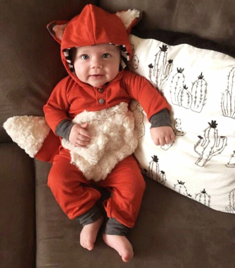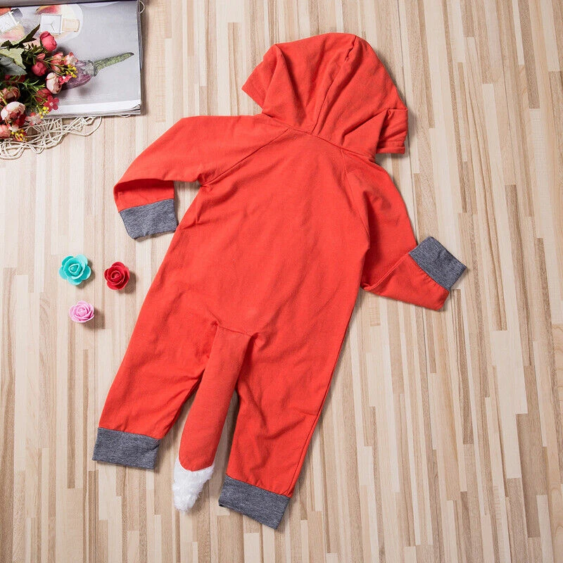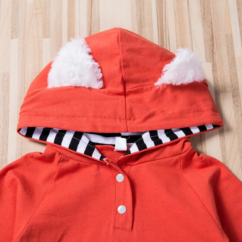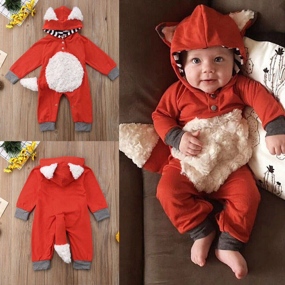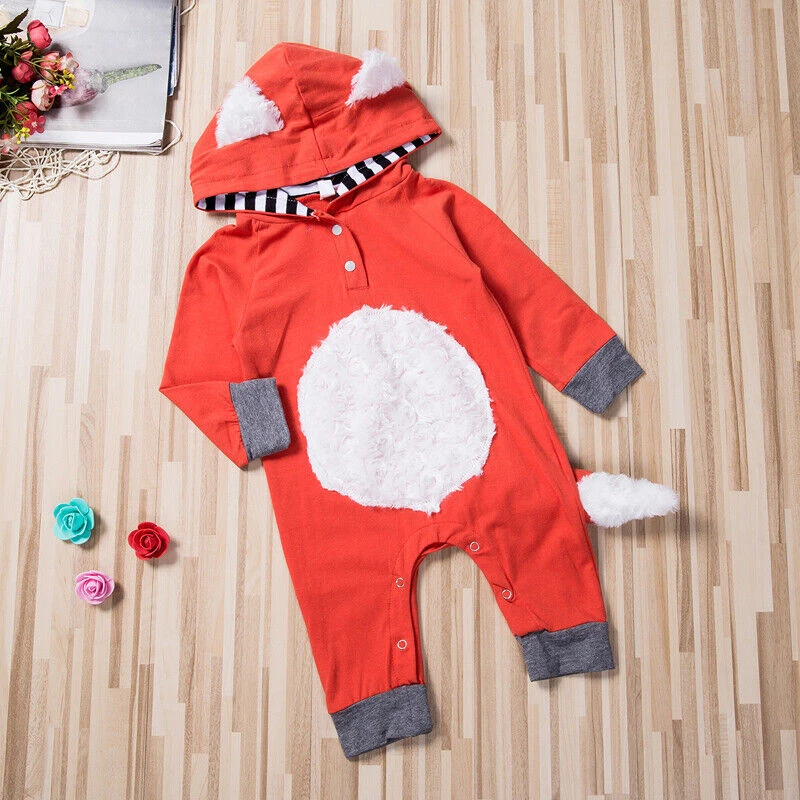 Newborn Baby Boy Girl Kids Fox Hooded Romper Jumpsuit Bodysuit Clothes Outfits