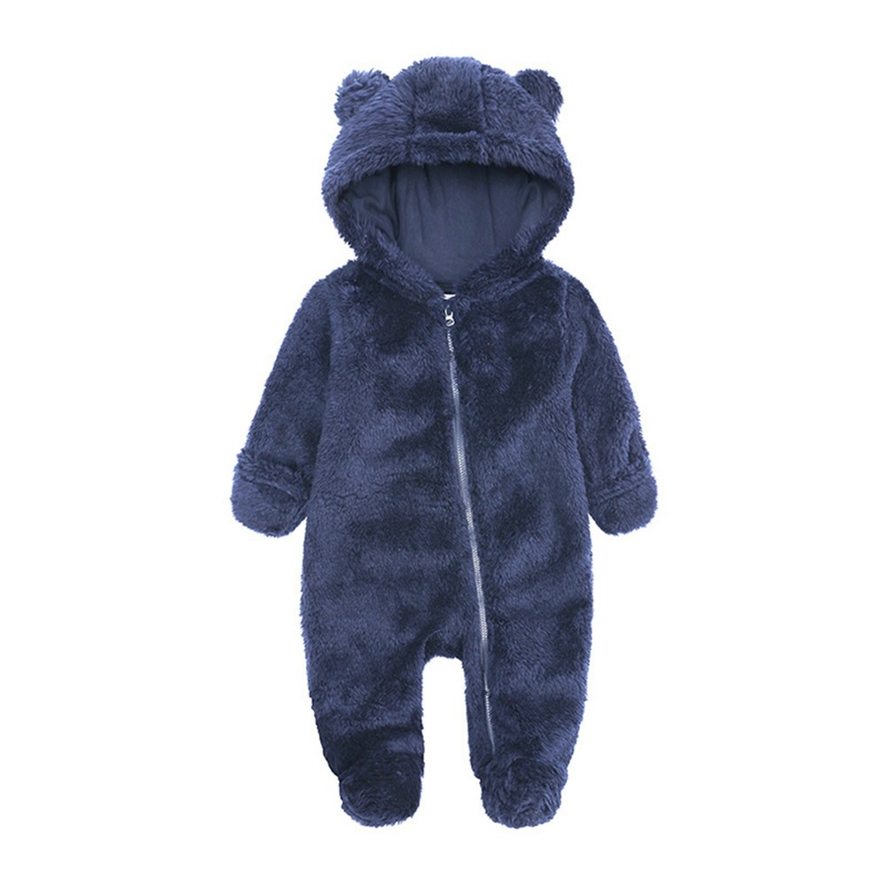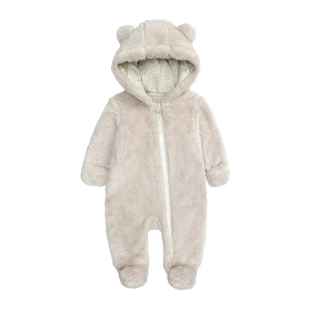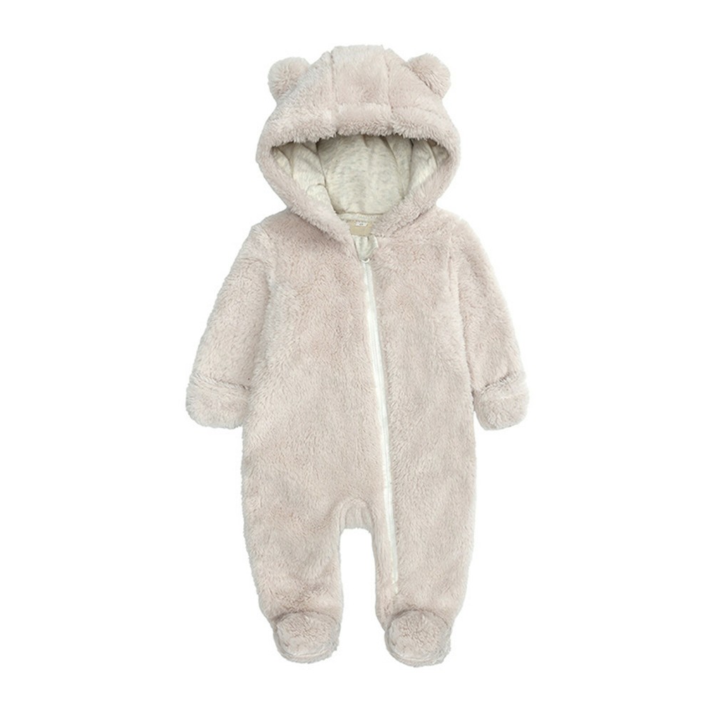 Newborn Infant Baby Girls Boys Fleece Bear Hooded Footed Romper Jumpsuit Clothes