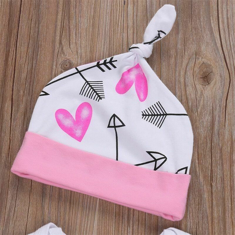4Pcs Newborn Baby Girl Clothes Romper Bodysuit Tops Pants Headband Outfits Set