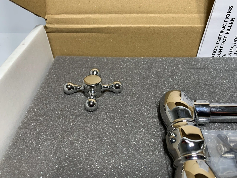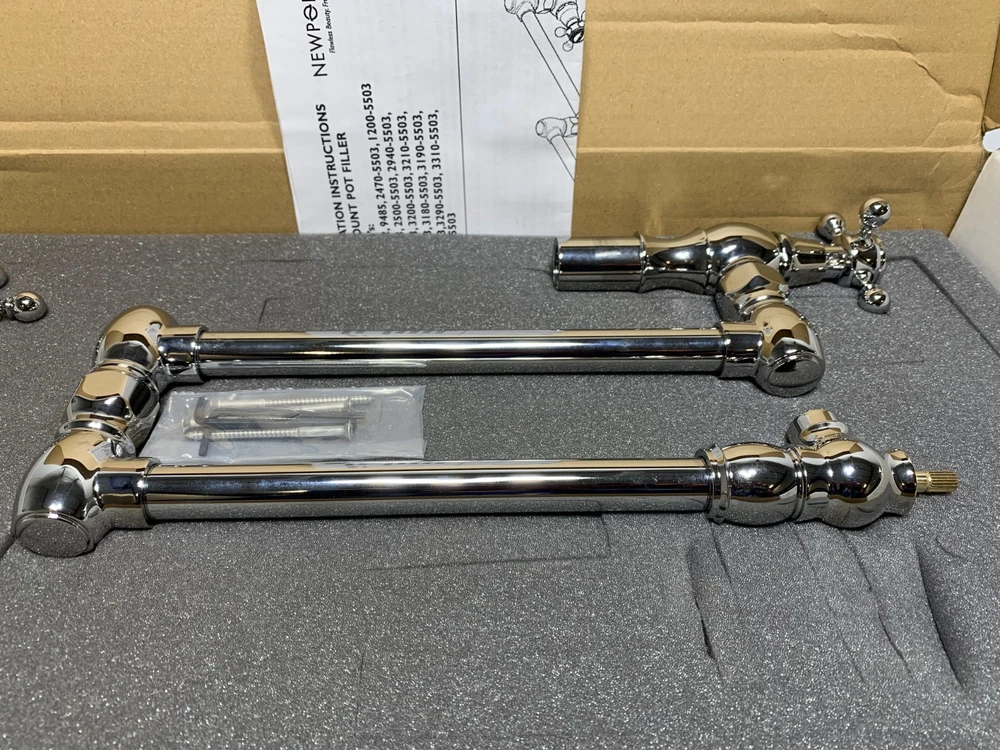 This is a NEW - unused Newport Brass 9481/26 Chesterfield Pot Filler Wall Mount Polished Chrome Buyers and Re-sellers, don't miss this opportunity to purchase quality surplus equipment at a great price! There are many more surplus parts on our store, check it out! Return Policy: Returns are accepted within 60 days of the delivery date. Rest assured we will cover all return shipping costs! All returns must be in "as shipped" original condition to qualify for a refund. Photos of packing and product is required for damaged items. Customer returns that satisfy all of the above requirements will be issued a refund including any applicable sales tax Newport Brass 9481 Features: Covered under Newport Brass's limited lifetime warranty and limited lifetime commercial warranty Faucet body constructed of brass Single hole mounting type Wall mounted faucet installs on the wall directly above sink Swivel spout allows for greater access to all areas of the sink 2 cross handles control the flow and temperature of water Includes cartridge Mounting hardware included Low lead compliant Newport Brass 9481 Specifications: Height: 7-15/16" Spout Reach: 21-3/16" (center of faucet body to center of spout outlet) Flow Rate: 4.5 gallons-per-minute Faucet Holes: 1 (holes needed to install faucet)