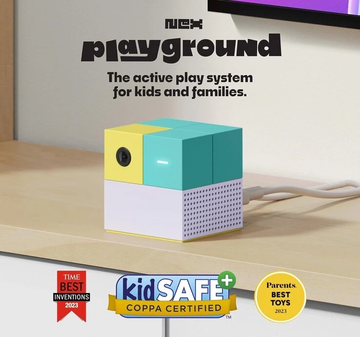 5 GAMES INCLUDED. UNLOCK MORE WITH PLAY PASS. Playground comes with Fruit Ninja, Starri, Whac-a-Mole, Go Keeper, and Party Fowl. A separate purchase of a Quarterly ($49) or Annual Play Pass ($89) is required to access the full catalog of games and get new games each month, including Barbie, Teenage Mutant Ninja Turtles, Peppa Pig, Elmo, Miraculous Ladybug, Gabby's Dollhouse, Kung Fu Panda and more. GET MOVING WITH ACTIVE FAMILY FUN. Nex Playground is a new kind of video game console that gets your family moving. It easily connects to your TV, transforming your living room into an active play space. Within minutes, your family will be playing Fruit Ninja, Whac-a-Mole and more. Using a built-in camera to track motion and natural body movements, anyone in the family can jump right in. JUST USE YOUR BODY TO PLAY. Play naturally just by moving your body. Playground uses the magic of AI to follow your movements using the built-in wide-angle camera. No controllers or clunky trackers! Up to 4 players can play at the same time, so everyone can get moving together. GAMES YOU'LL LOVE MOVING TO. Playground is packed with interactive motion games, turning your living room into an arcade, theme park, gym, and more. There is something for everyone. It is perfect for indoor family game night, after school activities, or a playdate with friends. EASY SET UP. Playground connects to your TV or projector with a simple HDMI connection and gets everyone in on the fun. It's small and sits elegantly on any console or mantle, and can easily fit in a backpack for playdates and more. From ages 5 and up—Playground is the life of every party. SAFE FOR KIDS AND FAMILIES. Playground content is safe and appropriate for all ages. No ads. No in-app purchases. No mature content. Playground is also kidSAFE+ COPPA certified and motion tracking data is never stored or processed in the cloud.